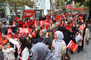Yürüyüşün ardından İzmit Belediye Meydanı’nda gerçekleşen Cumhuriyet Korosu ile kutlamalar taçlandı. Minikler, büyük bir heyecan ve gururla Cumhuriyet şarkılarını seslendirirken aileleri de bu anlamlı ana ortak oldu. Renkli bayraklar, gülümseyen yüzler ve çocuk sesleriyle İzmit Meydanı adeta bir bayram alanına dönüştü.